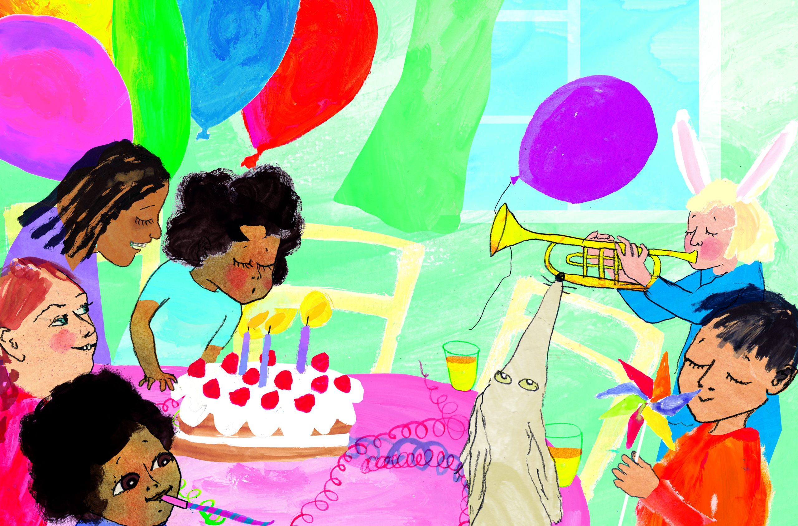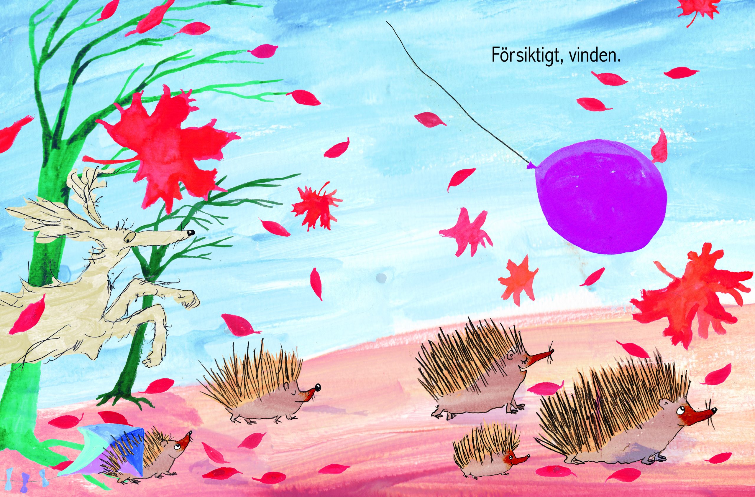 Det var också viktigt att skapa en känsla av fart som tilltar och ökar som blåsten. Dessutom ville jag att det skulle finnas en spännande berättelse, därför lade jag till en hund och en dramatisk ballongjakt som vi kan följa genom hela boken.