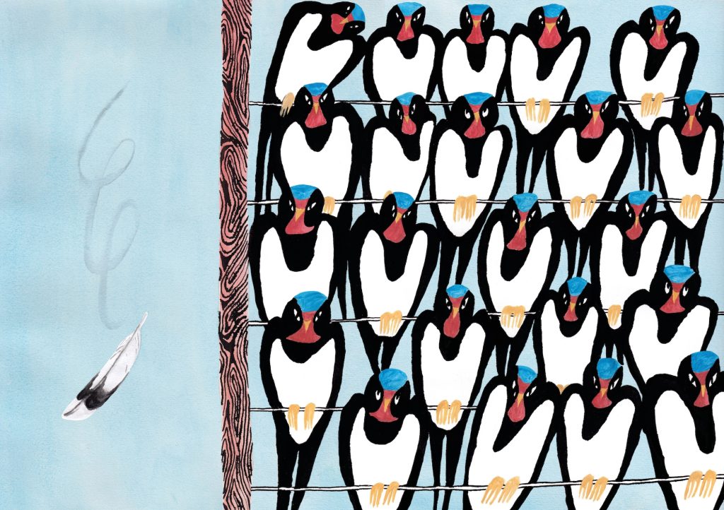 “Med en färgpalett som får en att tänka på Stig Lindbergs i Krakel Spektakel köper en klubba, en pigg grafisk stil, en stor portion humor och ett fång av roliga rim skapar bilderboksdebutanten Linn Henrichson ett rivigt drama om en tjuvaktig gatusmart fiskmås”