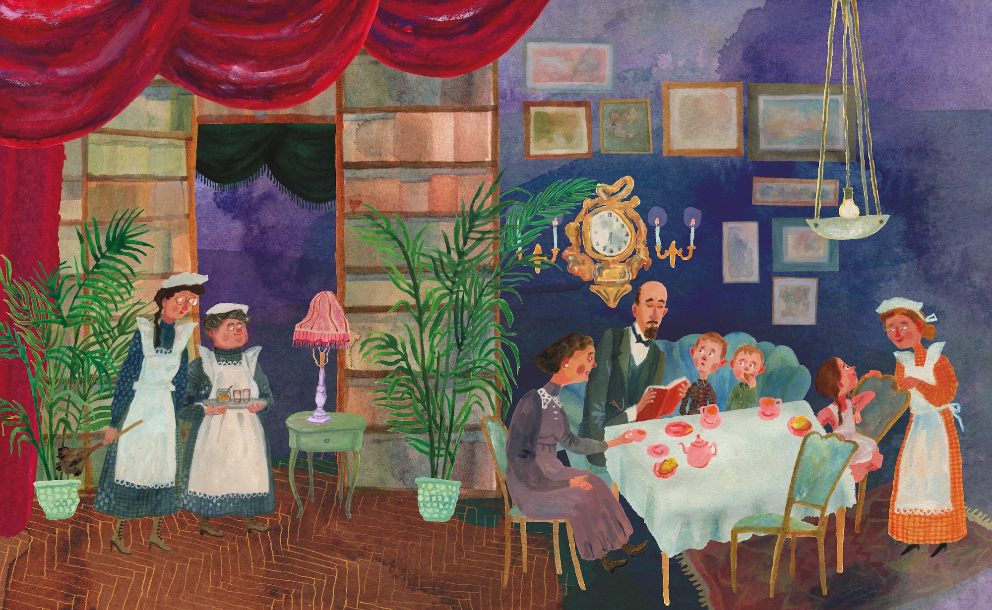 Jag praktiskt taget bara satte igång, konstigt nog. I och för sig hade jag blivit väldigt förtjust i att måla med gouache så jag var säker på att jag ville fortsätta med det. Och så hade jag en känsla för hurdana färger jag var ute efter, speciellt i fantasidelarna av boken. Det var härligt att forska i detaljer från Karin Boyes och Margot Hanels liv och fundera på hur jag skulle använda mina fynd i bilderna. Kristina Sigunsdotter sitter på oändligt kunskap om Karin Boye så hon fungerade som en extremt nyttig infobank för mig vilket jag är mycket tacksam för.