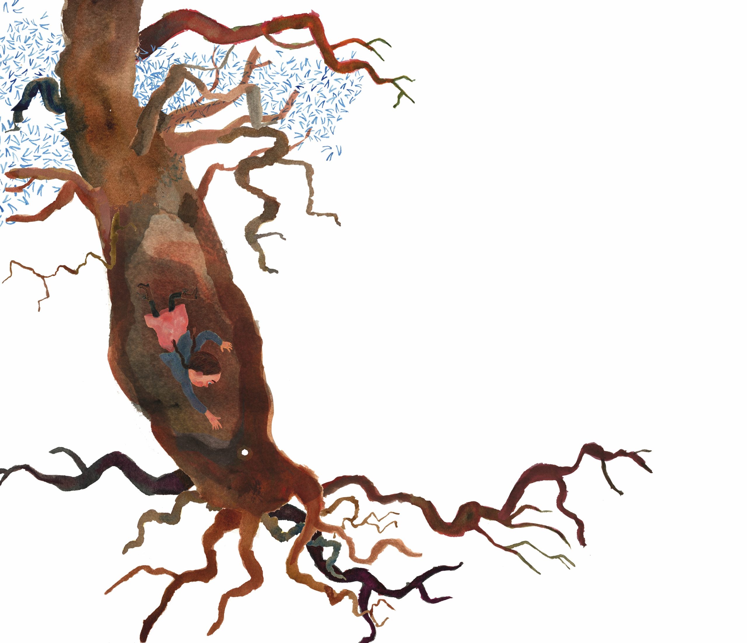 Jenny Lucanders gouacheillustrationer förhöjer sagoäventyret, som bygger på Boyes liv och dikter. I Trädet under jorden hittar Karin en portal till underjorden. Hon tar sig ner och en sierska spår att hon ska rädda prinsessan utan namn. Äventyret kan börja.
